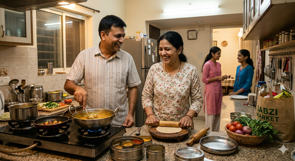 प्रमोद ने सोचा, “वाकई, यह बहुत कठिन है। दफ्तर के बाद यह सब करना सच में थका देने वाला है।” अब उसे दोपहर का खाना भी बनाना था। उसने यूट्यूब की मदद ली और मां से पूछकर खिचड़ी, बेसन करी और आलू की सब्जी बनाई। उसने सब्जी और करी थोड़ी ज्यादा बनाई ताकि रात को भी काम आ सके। दोपहर तक मां की तबीयत सुधरी, तो दोनों ने साथ खाना खाया।